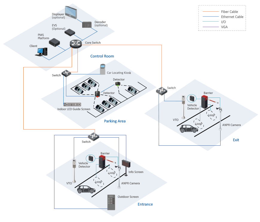 • Support centralized networking management of multiple parking areas and parking lots